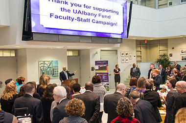 To give to the 2017-2018 UAlbany Fund, visit: http://bit.ly/2AjQyiG or contact Lisa Gonzalez from University Development at [email protected] for more information. Tax-deductible donations can be given online or deducted from payroll.