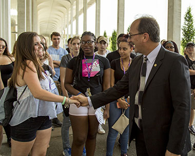 President Rodríguez speaks to an incoming UAlbany freshmen tour group. (Photo by Carlo de Jesus) |