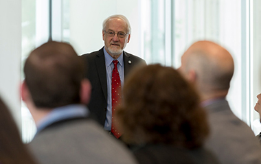 Provost James Stellar fields questions from a campus audience about the University's new Strategic Plan at a recent 'roadshow' presentation. (Photos by Brian Busher) |