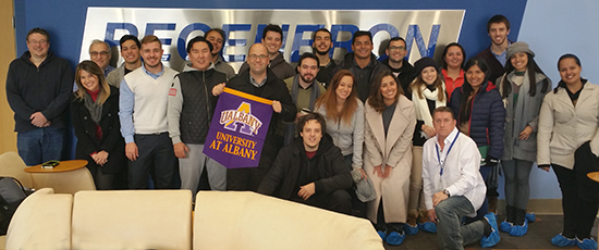 The students went to Transfinder, GE Renewable Energy, Vicarious Visions, and Regeneron and Wealth Advisory Group in visits arranged by UAlbany Director of Community and Economic Development Matt Grattan.