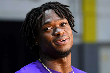 UAlbany high jumper Matthew Campbell speaks during an interview on Wednesday in the SEFCU Arena. (Times Union photographs here and on homepage by Will Waldron)