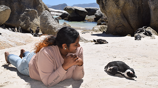 “My favorite part about studying abroad in Cape Town was the rich history, the people, the culture and nature itself. Every day I was inspired. Being a first-generation college student, I shared this similar narrative of education being a means for success. The students there did not take their education for granted. I now get to share my experiences and perspectives with peers in my classes every day. I hope to continue traveling, earn a graduate degree related to international relations/development, and have my own nonprofit in the future.”