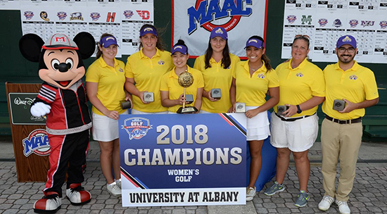 ALBANY, N.Y. (April 24, 2018) — For the second time in the UAlbany women’s golf program history, the team is the MAAC Women’s Golf Champion. The Great Danes, playing on Disneyworld's Magnolia Golf Course in Lake Buena Vista, Fla, were led by senior Annie Songuen Lee, who claimed her second career McLeod Trophy by placing first in the individual standings.