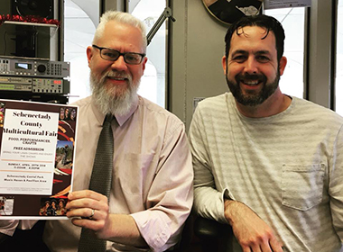 Associate Professor Eric Hardiman and second-year MSW student Sean Cochrane are promoting Sunday's Schenectady County Multicultural Fair. |