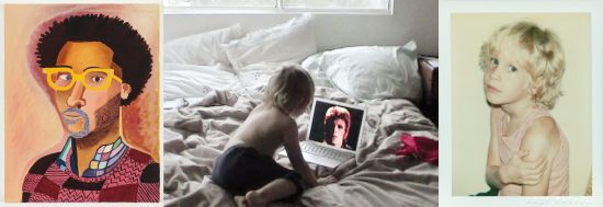 Three works from three exhibits that will be at the University Art Museum this summer: from left: Alex Bradley Cohen’s “Self-Portrait Yellow Glasses;" Frances Stark’s “This Is Not Exactly a Cat Video: w/ David Bowie’s 'Starman;'” and Andy Warhol’s “Unidentified Boy (Wavy Blond Hair).”