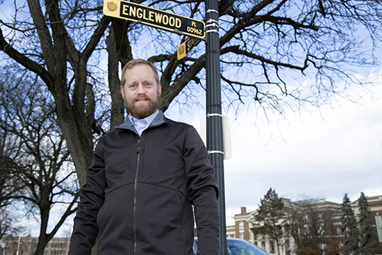 Erik Schlimmer reveals the story behind Albany's 785 street names in new book, including Englewood Place, which was laid out in 1879, predating UAlbany's Downtown Campus by 30 years. (Photo by Patrick Dodson)