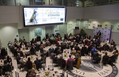 The 3rd annual Celebration of Scholarships dinner, which recognizes donors who give to scholarship funds and the recipients of their gifts, was held last week at University Hall. (Photo by Patrick Dodson) |