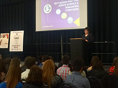 ALBANY, N.Y. (March 28, 2019) — More than 600 students and teachers from approximately 40 high schools across New York are meeting on campus for two days this week to present their original research at the 34th Annual Upstate New York Junior Science and Humanities Symposium (JSHS).