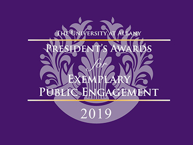 ALBANY, N.Y. (April 25, 2019) — The University has announced the recipients of the 2019 President’s Awards for Exemplary Public Engagement. Awardees will be honored at a ceremony at the Performing Arts Center Recital Hall at 5 p.m. Monday, April 29.