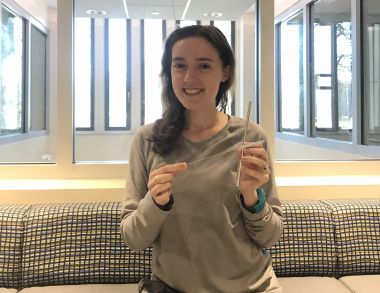Grace McGrath displays her metal reusable straw, and the straw brush that keeps it clean between uses. |