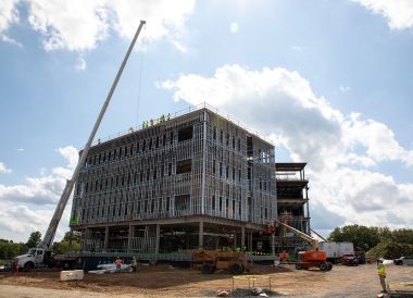 Construction began last year on the state-of-the-art facility, designed to house a constellation of academic units focused on the most critical challenges facing humankind — climate and environmental issues, emergency preparedness, cybersecurity and risk management. The building is being funded in part by Gov. Cuomo’s NY SUNY2020 Plan, an initiative to enhance educational programs and spur economic growth, and is on target for completion in August, 2021.