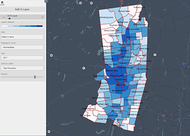 Last summer, the consortium turned to AVAIL, which is directed by Catherine Lawson, associate professor in Geography & Planning and program director of the department’s Masters of Regional Planning program. Getting right to work using U.S. Census data, AVAIL produced a test version of the website for consortium members in September, and teamed with them to officially launch Capital Region Indicators last Wednesday.