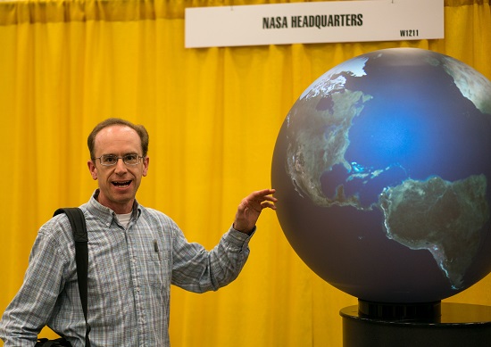 DAES Professor Paul Roundy stands next to NASA headquarters at the American Meteorological Society annual meeting in Austin, Texas.