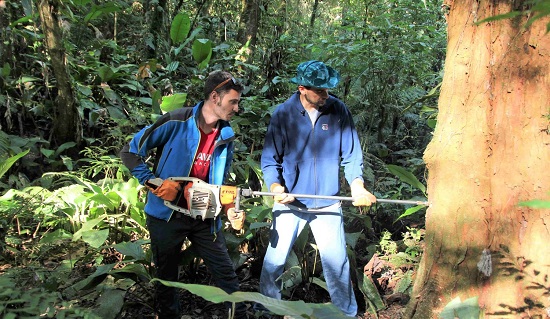 DAES postdoctoral researcher Ernesto Tejedor collects a tree core sample during the UAlbany PIRE summer program in Brazil.