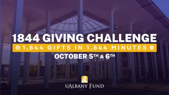Make your gift at www.albany.edu/1844challenge during the 1,844 minutes that begin Monday at 10:16 a.m. and continue through 5 p.m. Tuesday. The amount is up to you — every dollar helps keep a student on their path to becoming a UAlbany graduate.
