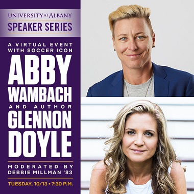 ALBANY, N.Y. (Oct. 6, 2020) – Abby Wambach and her partner Glennon Doyle will talk about finding your true self when they headline the University at Albany’s virtual Fall 2020 Speaker Series on Tuesday, Oct. 13 at 7:30 p.m.
