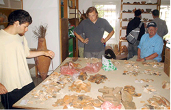 UAlbany students Rob Jennings and Blake Peschel examine Roman pottery alongside UAlbany Associate Professor Michael Werner in an archaeology lab. The pottery was excavated from the Roman Legionary Base in Serbia. (Photo Mike Werner) |