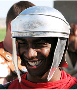 UAlbany graduate student Matthew Hardy dresses as a Roman legionary soldier as part of the "Live Earth" concert festivities held in Serbia. (Photo Mike Werner) |
