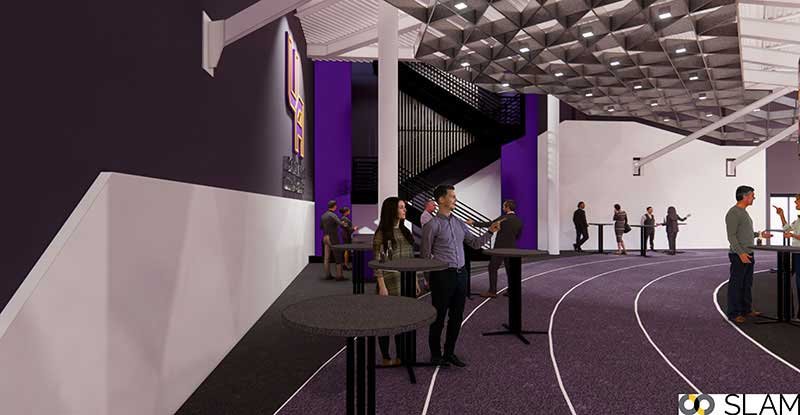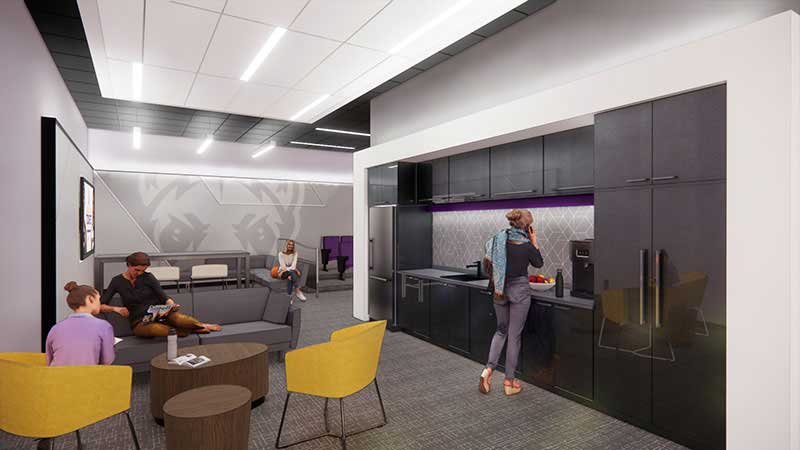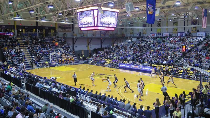 The current project includes the removal of all outdated and unsafe existing bleacher seating systems and several sections of the mezzanine level to allow for the new arena design. The new configuration will be a combination of fixed and retractable bleacher seating systems on all four sides. Almost all seating sections will have seatbacks for greater fan comfort with the exception of the west retractable bleachers, which will be more traditional bench style. Additionally, the existing basketball competition court flooring (currently in a north-south orientation) will be removed and replaced with new to allow for the competition court to rotate to an east-west direction. The practice courts will remain in place. A major addition to the project will be the new Men’s and Women’s team/locker rooms located under the fixed seating section at the north. This allows for the teams to be closer to the court on gamedays and have improved student athlete amenities including a lounge space, kitchen prep area, and an auditorium style meeting space for coaching sessions. The new arena will now have additional arena storage areas, VIP seating, club areas on both the arena and main levels, all contributing to a totally new look for the arena. New Athletics and Broadview Federal Credit Union branding will be part of the upgrades. With updated AV and broadcast systems, more robust Wi-Fi, and additional improvements, this venue will raise the level of this Division 1 venue.