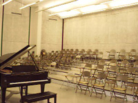 The Band Rehearsal Room (PAC B-28) is located in the basement. It us used primarily by the Music Program for rehearsals by their four large ensembles.