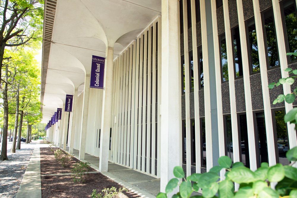 - Bus Stop: UAlbany buses stop at Collins Circle, which is adjacent to Colonial Quad.