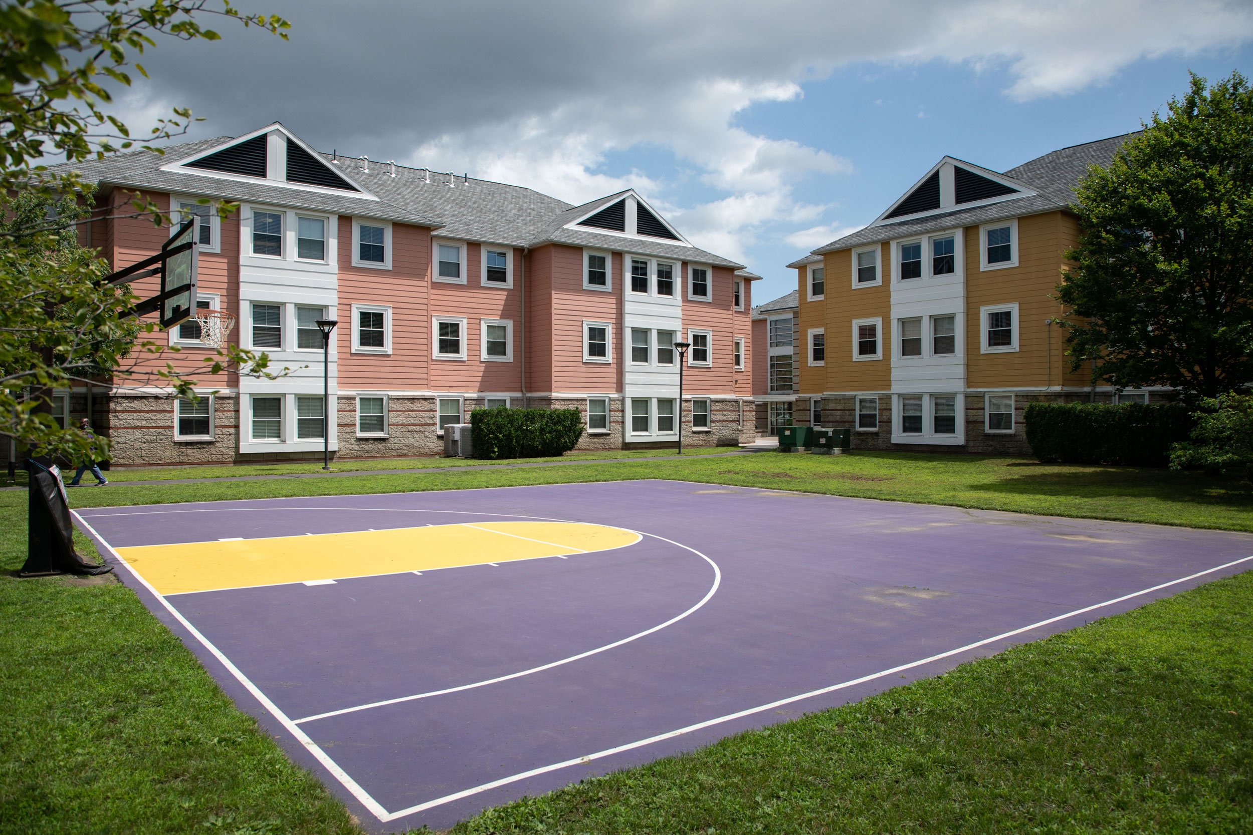 Housing Managers live on site and serve as a resource for students. There is also a community building with meeting spaces and a fitness center. Outside, enjoy basketball and volleyball courts. Download a campus map.