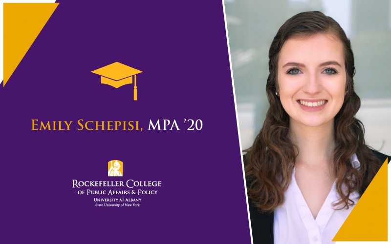 Emily Schepisi, MPA ’20 graduated in December with a dual concentration in policy analysis and public management. Emily was a part of the BA/MPA program, starting her graduate coursework while completing a dual BA in political science and social work at SUNY Fredonia. During her time at Rockefeller College, Emily completed an internship with the NYS Department of Health Office of Public Health Practice. In this position, she worked on a sustainability plan for re-accreditation, helped to restructure online trainings for NYLearnsPH.com, as well as identified courses to help the public workforce in response to the global health crisis. While completing her degree, Emily secured full-time employment as an analyst with Airam Actuarial Consulting.