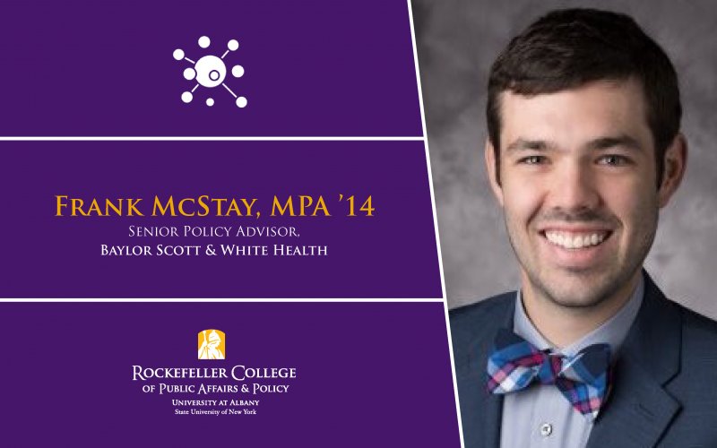 Frank earned a Master's of Public Administration in Analytic Methods and Health Policy from the University at Albany’s Rockefeller College of Public Affairs & Policy in 2014.