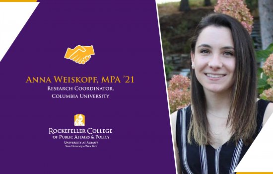 Anna Weiskopf, MPA '21 secured a position as a Research Coordinator at Columbia University upon graduation from Rockefeller College. Learn more about how her internship experiences and coursework prepared her for the next step in her career.