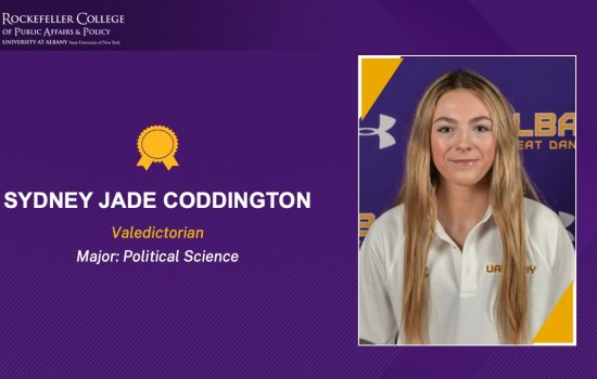 A member of UAlbany's cross country and track teams, political science major Sydney Coddington is Rockefeller College's 2021 Valedictorian.