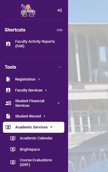 Logging onto the SIRF system from MyUAlbany or Brightspace: