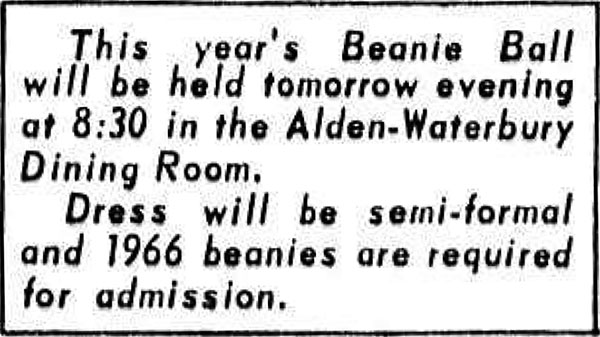 Rivalry, a tradition that began at the New York State College for Teachers in 1913 and continued into the 1960s, pitted freshmen and sophomores, and eventually upperclassmen, against one another. Each group had its own class song, fight song, and large banner featuring its class year and mascot. Rivalry began on Campus Day in late October and continued until Moving-up Day, just before Commencement.