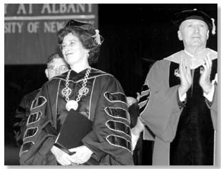 | Nov. 8: The newly inaugurated president is applauded by Donald Langenberg, University of Maryland chancellor. | ![]() |