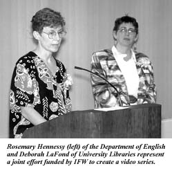 - Deborah LaFond, Donald Juedes, and Rosemary Hennessy, joint effort of University Libraries and departments of English and Womens Studies, to purchase videos to create a series, Seeing Women Transnationally.