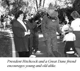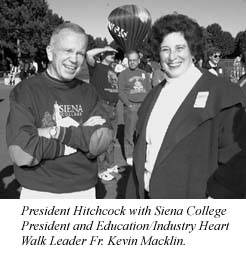 With President Karen Hitchcock as NE Region 1997 chairperson, the American Heart Walk, held on Sept. 27 at Siena College, set records for the region and University at Albany participation. About 350 from the campus community participated, raising more than $8,500 150 and $2,300 above last years marks.