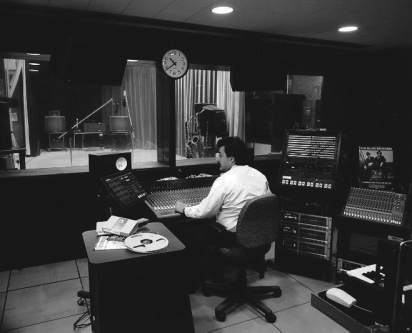 Charlie Vatalaro, recording studio manager for SUNYTunes, mans the control booth.