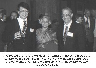 When the International Conference on Hyperfine Interactions had its 11th in a series of meetings � held every three years among worldwide leaders in the field � in Durban, South Africa, in late August, Das and three of his former Albany graduate students presented five papers on their recent studies. In addition, Das presided over a discussion section on "Accuracy and Efficiency of Current Theoretical Methods for the Study of Electronic Structures and Hyperfine Interactions in Solid State and Biological Materials."