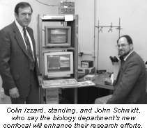 Izzard and Schmidt expect to have a confocal installed by the end of the Spring Semester. Izzard, an expert in optical microscopy and imaging techniques, has directed the short course in optical microscopy and imaging at the Marine Biological Laboratory in Woods Hole, Mass., since 1988. Schmidt has been director of the University�s Neurobiology Research Center since 1987.