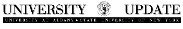 ![]() University Update is published by the Office of University Relations, University at Albany. Editor: Vincent Reda � Art Director: Carol Cowulich � Editor of Photography: Mark Schmidt � Phone: 518-442-3078 � Fax: 518-442-2560 � Email: [email protected] � Web Site: https://www.albany.edu News items should be submitted ten days prior to the publication date to the Office of University Relations, AD 233. |