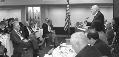 SUNY Chancellor John Ryan praised the University for its numerous examples of "forging partnerships with local municipalities and the private sector" and finding "ways to better serve each other�s needs," when he spoke to the Rotary Club at the Recreation & Convocation Center on Thursday, March 19. The Chancellor also said he believed that each SUNY campus must "re-define or re-confirm its character." Mission review "is essential to effectively address the realities of public higher education: limited resources, commitment to excellence, avoidance of . . . unnecessary duplication, and relevance to social and economic goals of society."