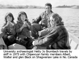 Jarvenpa has been studying circumpolar hunting and foraging peoples, beginning with the Han and Chipewyan Indians in northern Canada, since 1970. He spent his first year there as an apprentice hunter, sleeping in temperatures of 50 degrees below zero and eating whatever his group could hunt, fish or trap. Brumbach spent her first summer among the Chipewyan in 1975.
